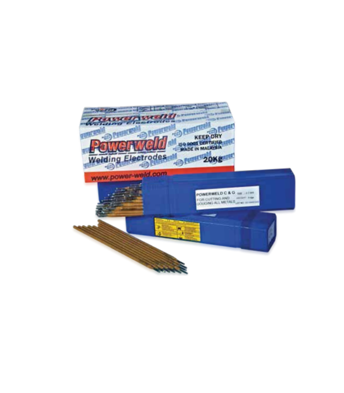- POWERWELD C & G electrodes are specially designed for powerfully effective cutting and grooving which can also be used for gouging and hole-piercing. It gives a concentrated forceful arc capable of penetrating plates up to 2.5mm in thickness.